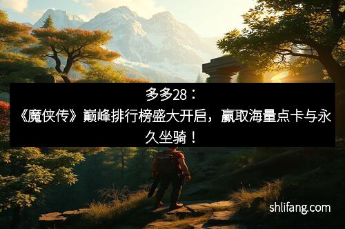 相信每一位喜欢《魔侠传》的玩家都梦想着在这个充满热血与幻想的江湖中脱颖而出,站在顶峰。而今,官方重磅推出“巅峰排行榜”活动,正式开启了全新的竞争舞台,这不仅是实力的比拼,更是财富和荣耀的象征!不论你是新手还是老玩家,只要敢于挑战,便有机会获得海量点卡、稀有永久坐骑,以及丰富的奖励礼包,带你体验真正的江湖巅峰。